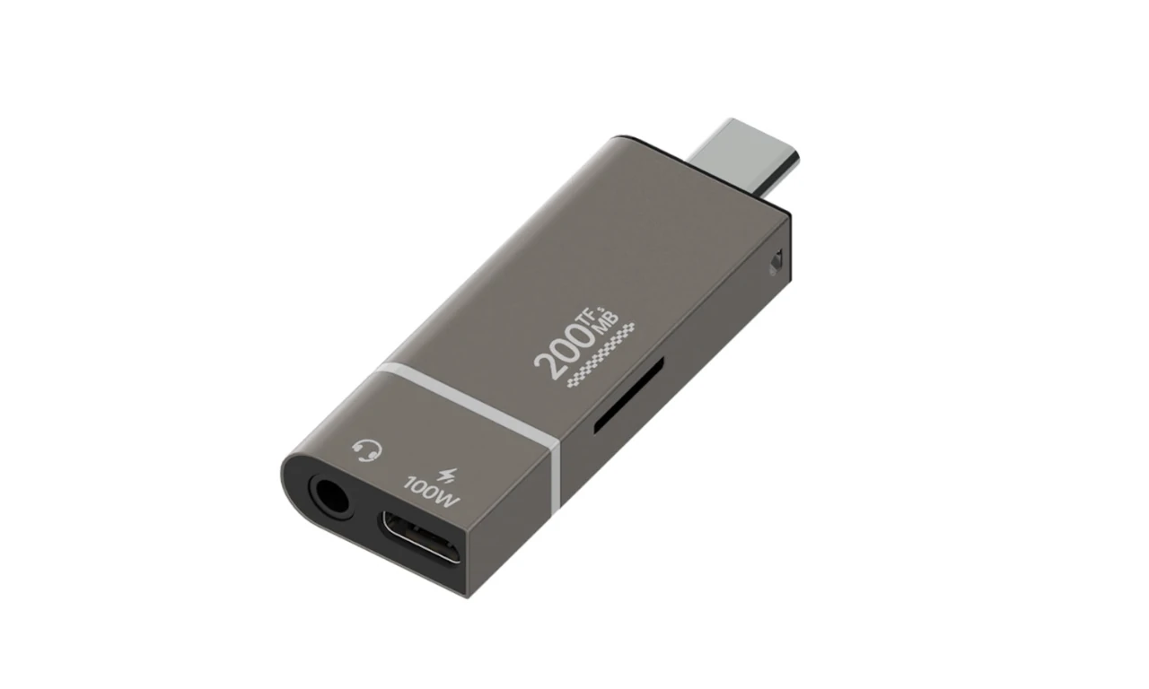 本体にはスロットのほかUSB Type-C端子と3.5mmステレオミニジャック(4極)が各1基備わっており、microSDカードへのアクセスとPCやスマートフォンへのUSB PD給電(最大100W)、内蔵DACを介した音声入出力を同時に行えるようになっています。