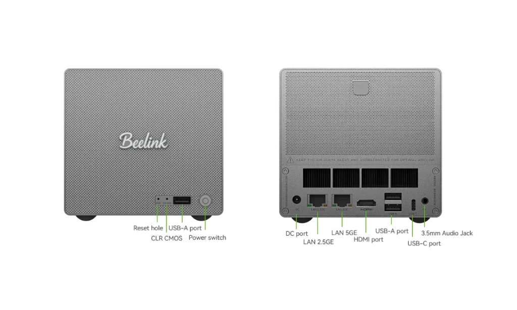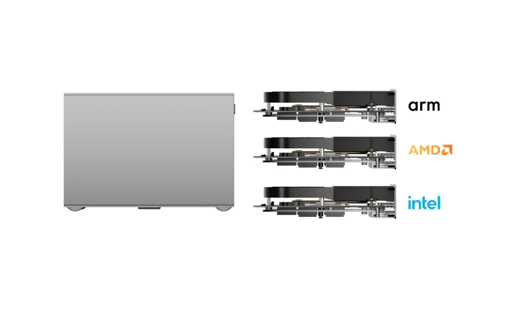 Beelink ME Proは2基の3.5インチ/2.5インチ HDD/SSDと3基のM.2 SSDを搭載可能なNAS(Network Attached Storage)です。M.2 SSD特化型のBeelink ME miniが2025年3月に発表された際、「ME Pro」・「ME MAX」として予告されていた製品の一方となります。