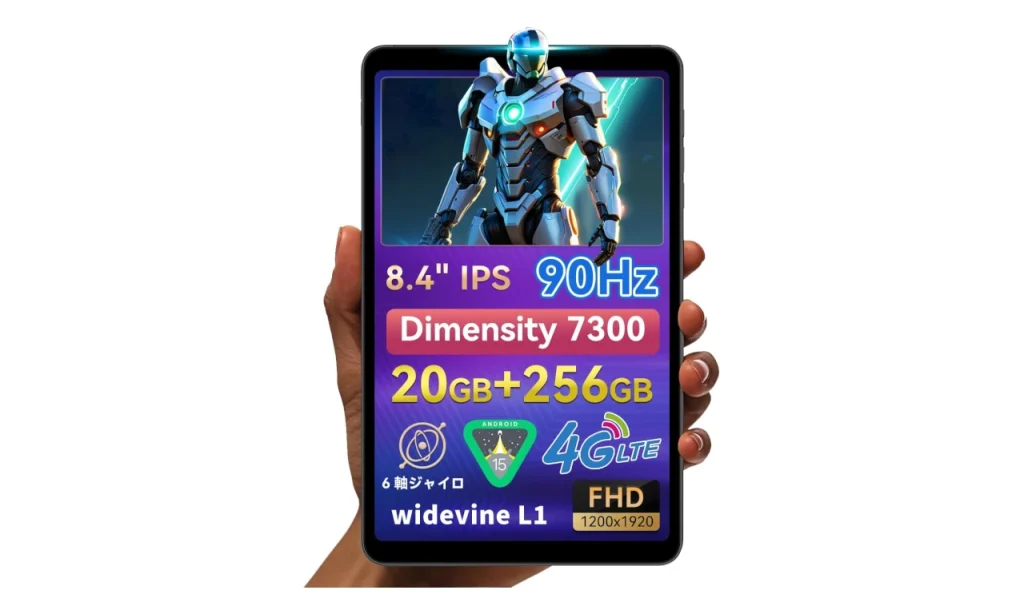 ディスプレイには8.4インチ "FHD+"のIPS液晶パネルが用いられており、リフレッシュレートは最大90Hz、輝度は最大400nitsです。Xの@BNCFaiに投稿された筐体画像によると、スピーカーは本体の両短辺に各1基、合計2基搭載されており、横向き時にステレオでの音声再生が可能です。Widevine DRMはL1とされています。