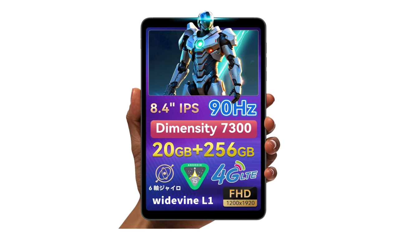 搭載されているSoCはMediaTek Dimensity 7300です。Arm Cortex-A78 4コア 2.5GHz + Cortex-A55 4コアのCPU部分、Arm Mali-G615 MC2のGPU部分から成るミドルレンジクラスのスマートフォン・タブレット向け製品であり、他社製品ではBlackview Active 10 Pro等で採用例がありますが、8インチクラスのタブレットでは2025年10月現在Bpad Mini Ultraが唯一の搭載製品と思われます。Headwolf FPad 7のDimensity 7050やAlldocube iPlay 70 mini ProのMT8791に比べ、CPU性能・GPU性能とも向上しているのが特徴です。