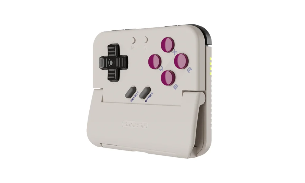 本体に実装されているボタンはABXYボタン・方向ボタン(D-Pad)・L1/R1ボタン・L2/R2ボタン・SELECT/STARTボタン・Mボタン・ホームボタンです。アナログスティックは備わっておらず、ゲームボーイを意識したデザインと合わせ、主にレトロゲームでの使用を前提に設計されていると思われます。