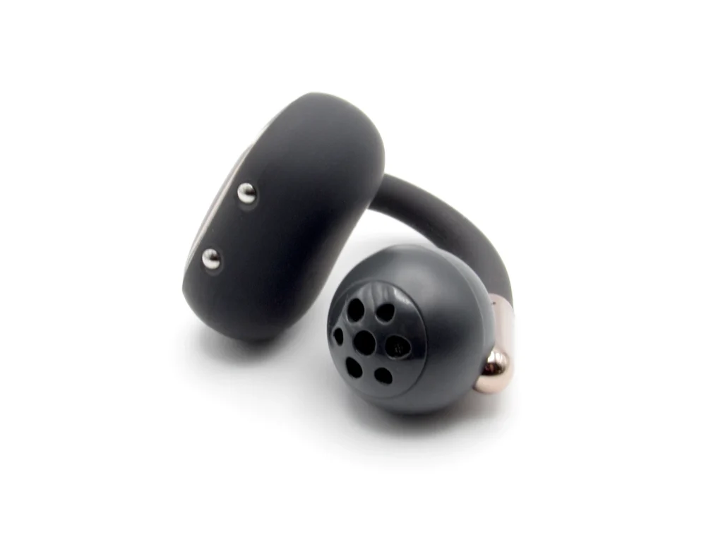 両端を結ぶブリッジ部分はニッケルチタン合金と液体シリコンを用いた「N-Flex Arch」構造とされています。ボール状の音声出力部はUUとほぼ同じサイズですが、ドライバーサイズの変更に伴ったものか開口部がわずかに大きくなっています。