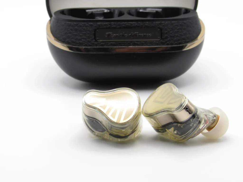 SOUNDPEATSのTWS製品としては珍しくハウジングが透明になっており、装着時に外側となる装飾パネルで覆われた部分を除き内部のパーツが透けて見えるスタイルです。装飾パネルは「S」をモチーフとしたデザインになっています。