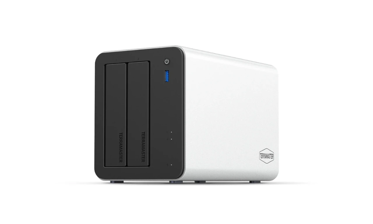 F2-425は筐体全体が黒で統一されていましたが、F2-425 Plusは外周部が白に変更され、TerraMasterロゴの表示面積も縮小されました。サイズはF2-425よりもごくわずかに小さいW122×H150×D219mm、ドライブを含まない本体の重量は2.2kgです。
